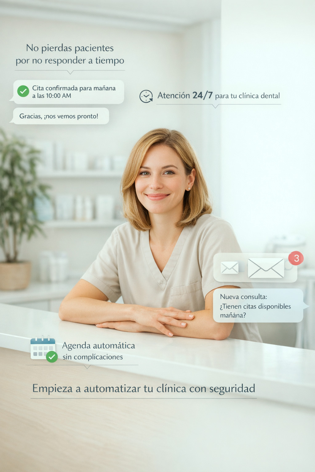 La clínica tiene atención continua + agenda ordenada, con menos errores y menos ausencias.