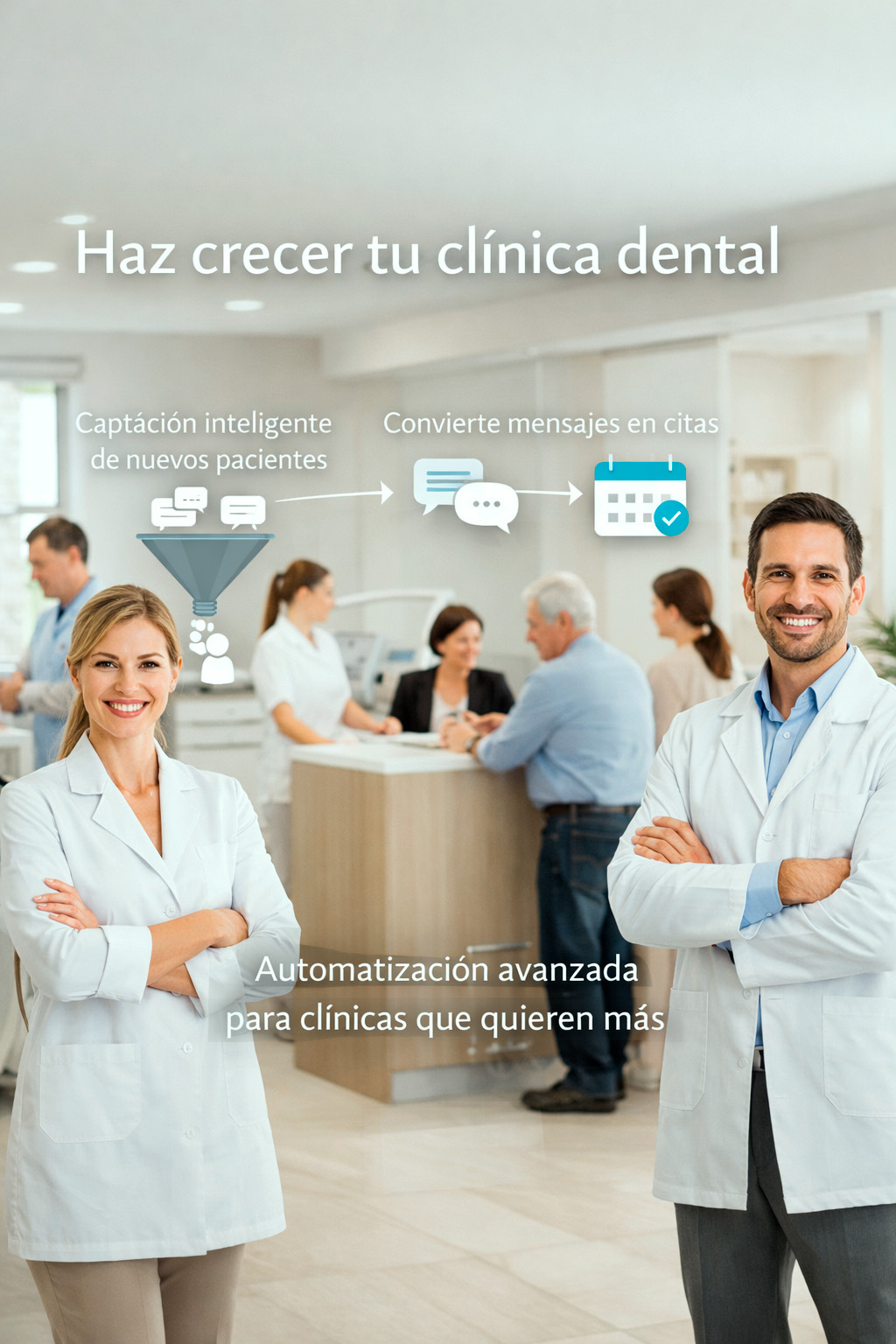 Pensado para clínicas con volumen, donde la recepción está saturada y la agenda sufre ausencias constantes.